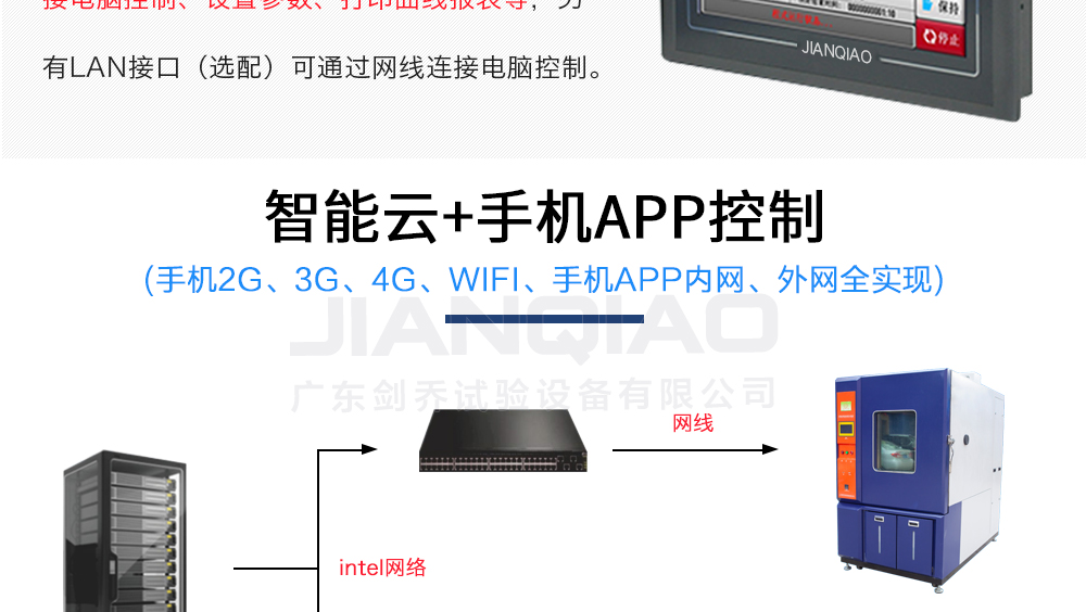 用途:可程式恒溫恒濕試驗箱 JQTH-1200L(屬于:雙開門非標定制款)主要用來測試各種材料耐熱、耐寒、耐干、耐濕的性能。本機采用智能中英俄文顯示7寸彩色觸控式屏幕畫面,操作簡單,程序編輯