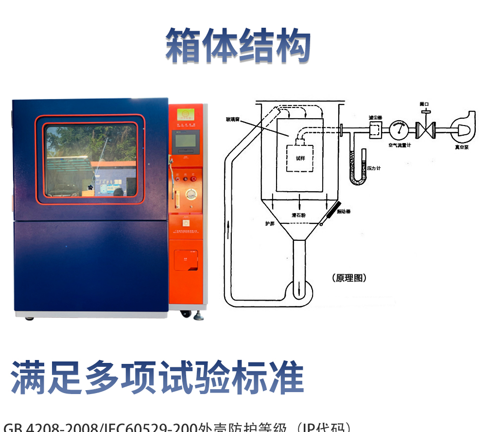 用途:防塵試驗箱適用于防護等級 (IP code), GB/T 4942.2-93(低壓設備防護等級),GB 7000.1(燈具防護等級),DIN40050和IP5K0等校準設計制造。SC-015應用于LED燈具和其它照明產品對IP5X和IP6X防塵等級測試。