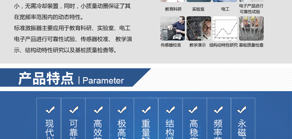 用途:標(biāo)準(zhǔn)激振器是利用永久磁鋼形成靜態(tài)磁場,不需要額外的勵(lì)磁電源,簡化了對功率放大器的要求,發(fā)熱量小,無需冷卻裝置,同時(shí),小質(zhì)量動圈保證了其在寬頻率范圍內(nèi)的動態(tài)特性。標(biāo)
